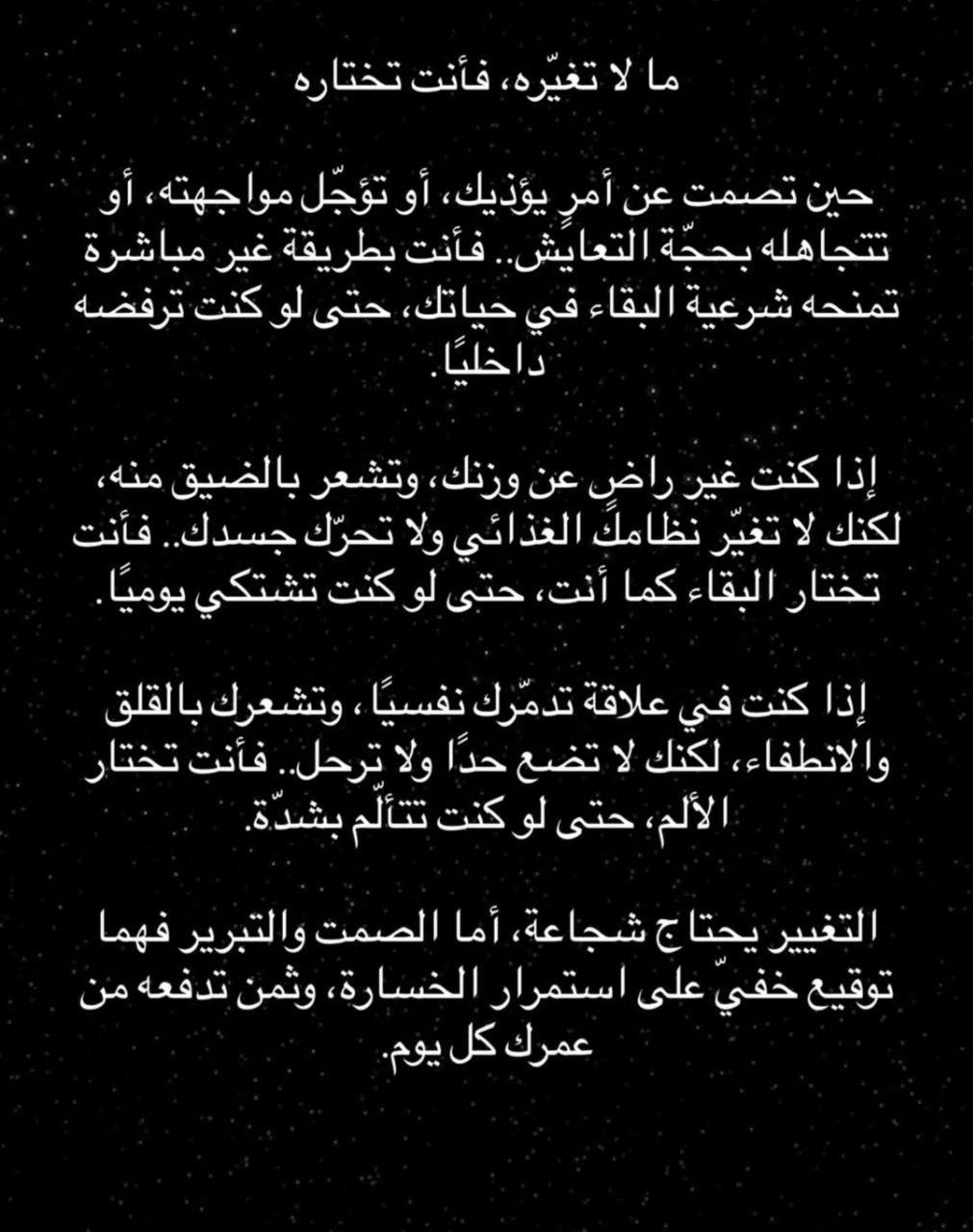 ومع الوقت، ستدرك أن الأفعال أصدق من الكلمات، وأن حُسنَ النية لا يحميكَ دائماً، لكنهُ يحفظ قلبك نظيفاً.